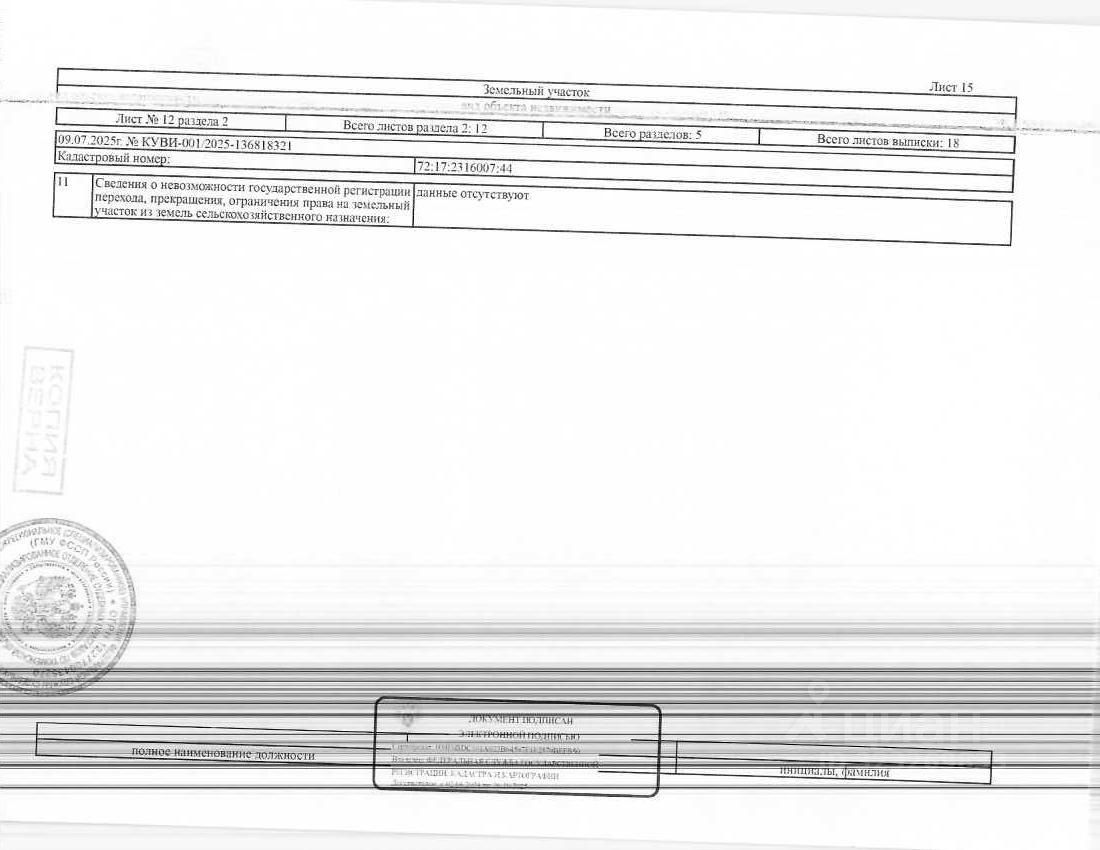 Должник: Поддубный Е.С., собственник: Поддубный Е.С. Лот: Земельный участок (земли сельскохозяйственного назначения, для садоводства и огородничества), площадь 903 кв.м., кадастровый номер: 72:17:2316007:44, р-н Тюменский, СНТ "Горошинка-3", ул. Яблочная, участок 42, н/ц: 294400 р., з-к: 44160 р, код: 0001, рег. 72-010308-ГМУ;