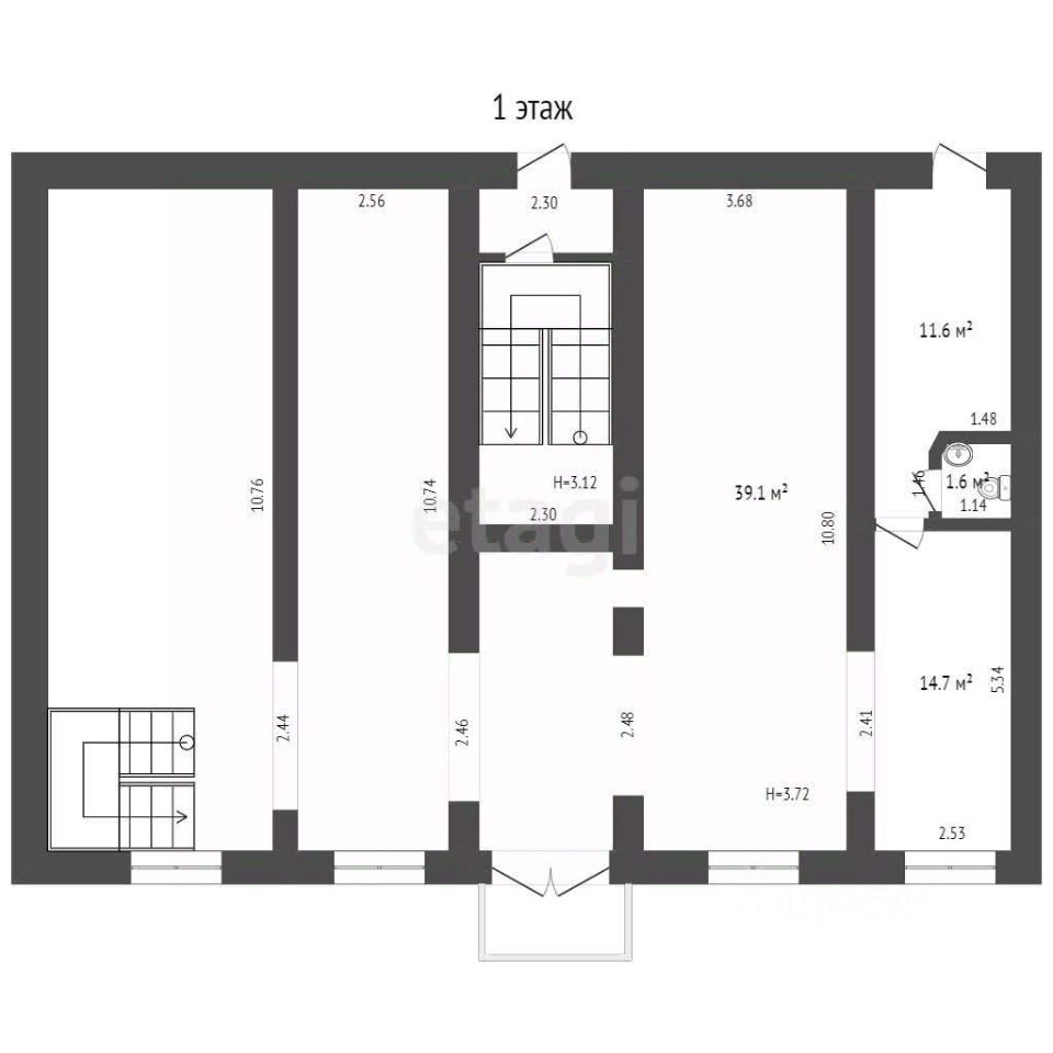 Помещение на 1 и 2 этаже жилого дома. Высокие потолки, отдельная входная группа.