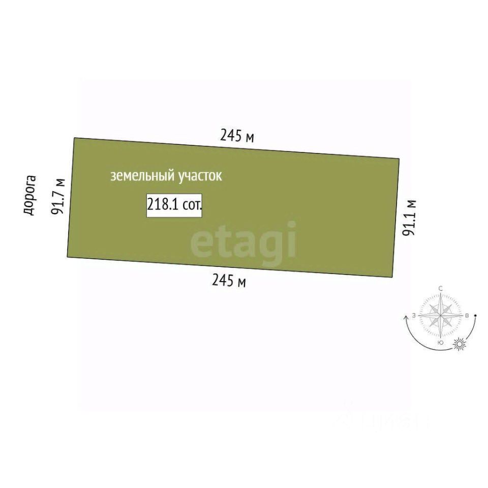 Участок правильной прямоугольной формы 2,2 га земли по привлекательной цене 41 000 рублей за сотку в районе пос. Березняки.