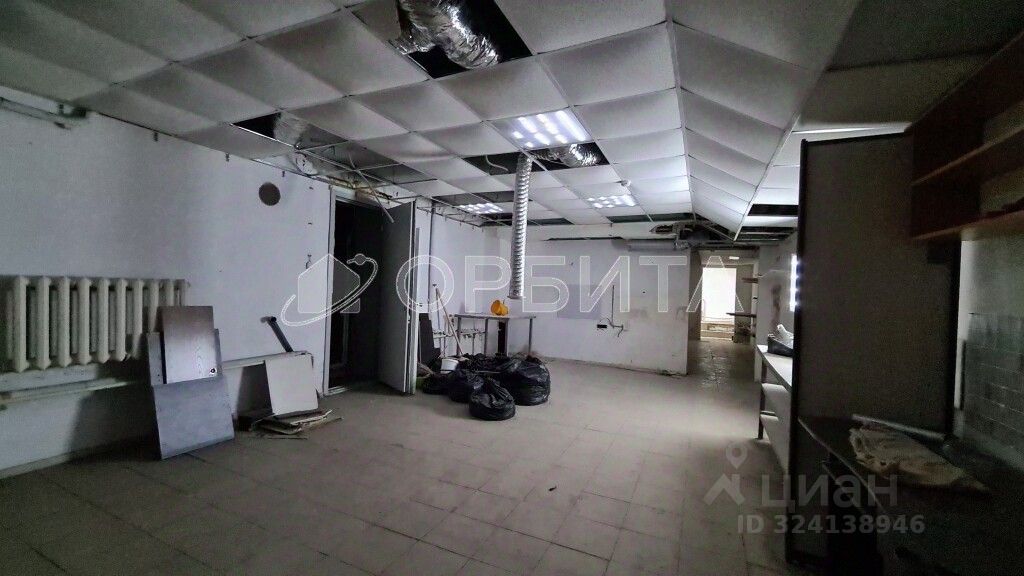Торцевое, имеет три входа-выхода, один из которых является соседним с федеральной сетью "Красное и белое" и аптекой. Помещение условно поделено на 2 половины. Наличие большой парковки, с возможностью погрузки-выгрузки материалов/товара. Состояние, требующее ремонта, делали врезку отопления (подтопили).