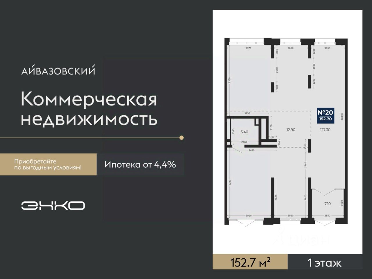 Помещение свободного назначения на 1 этаже, общая площадь 152.7 кв.м. Стоимость помещения 30,550,000 руб., цена за кв.м 200,065 руб.