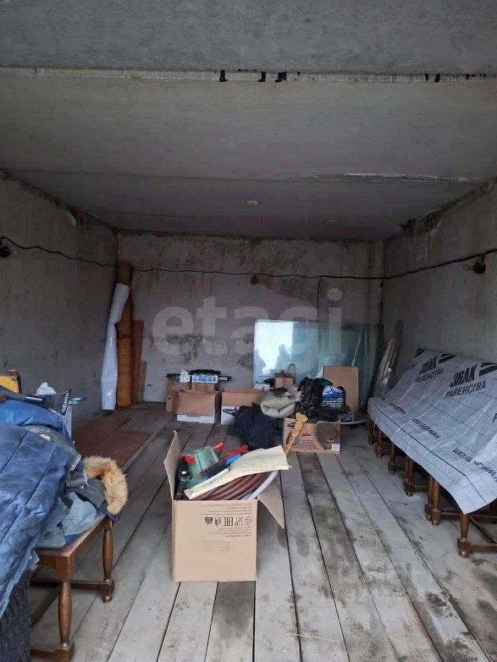 Стены гaрaжа из железобетонныx панелей, перекрытие - ж/б плита, крыша не течёт( был произведён капитальный ремонт кровли 2 года назад) . Пол застелен досками. На воротах имеются металлические штыри для фиксации ворот в открытом состоянии. Свет подключен.