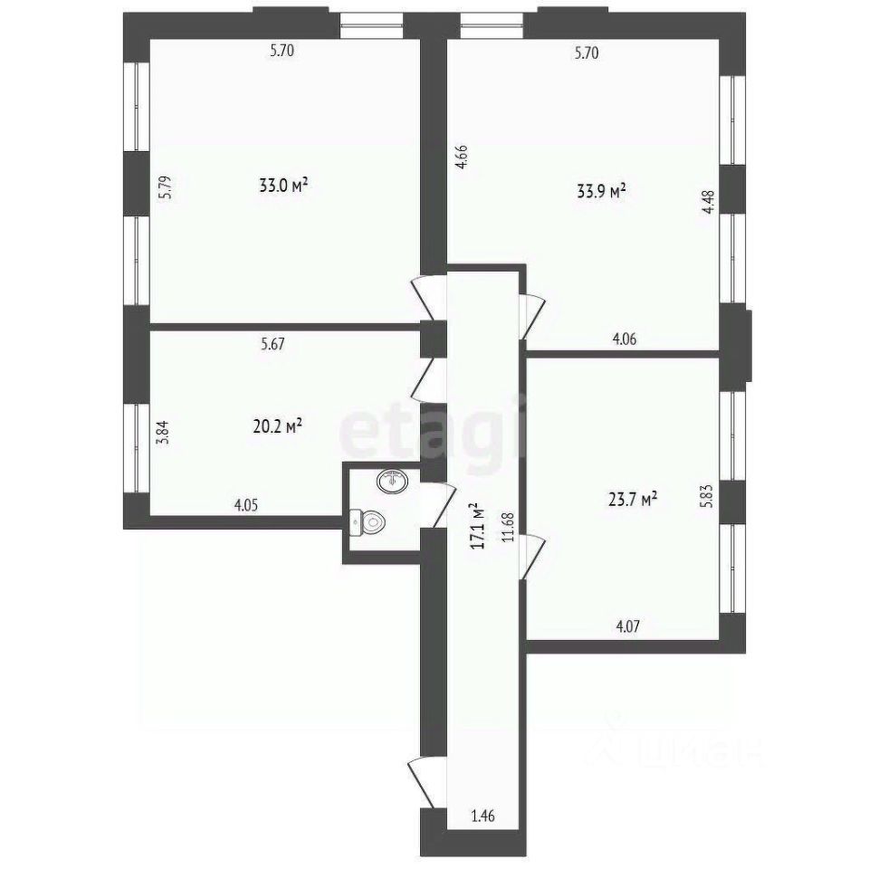 Площадь помещения: 56,7 м² (состоит из двух кабинетов: 33 м2 и 23,7 м2)