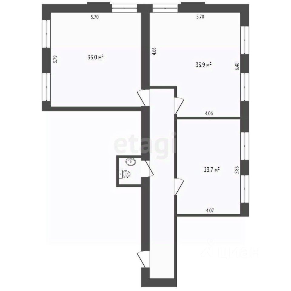 Площадь помещения: 76,9 м² (состоит из трех кабинетов: 20,2 м2, 33 м2, 23,7 м2)