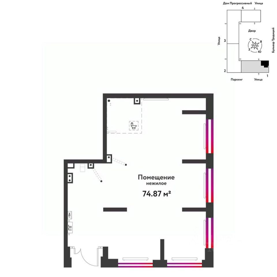 Продается торговая площадь, 74,87 м²