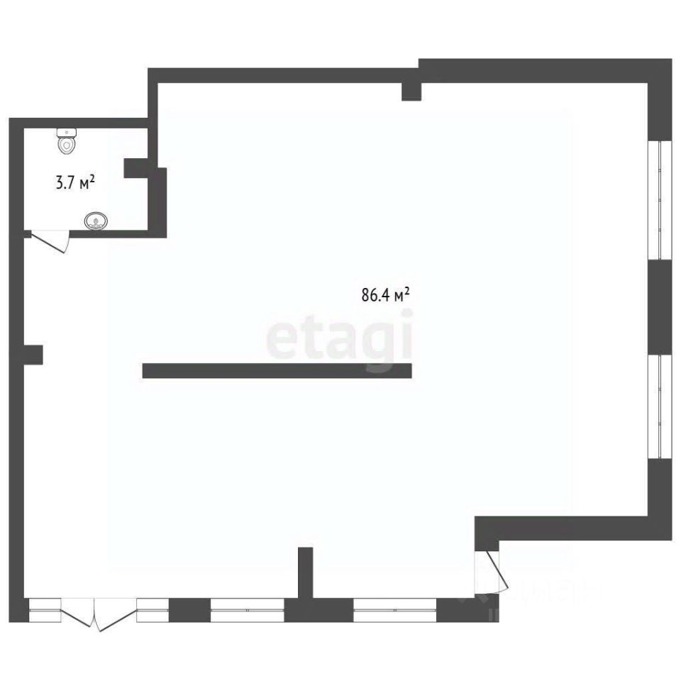 Помещение в черновой отдeлке, выcота потолков 3,3 м;