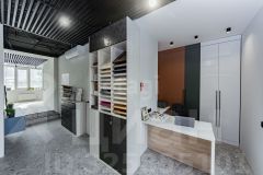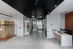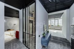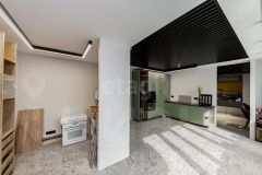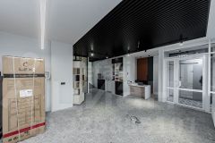 Стены - краска, на полу коммерческий кварц-винил, проведено LED освещение. Установлена сантехника.