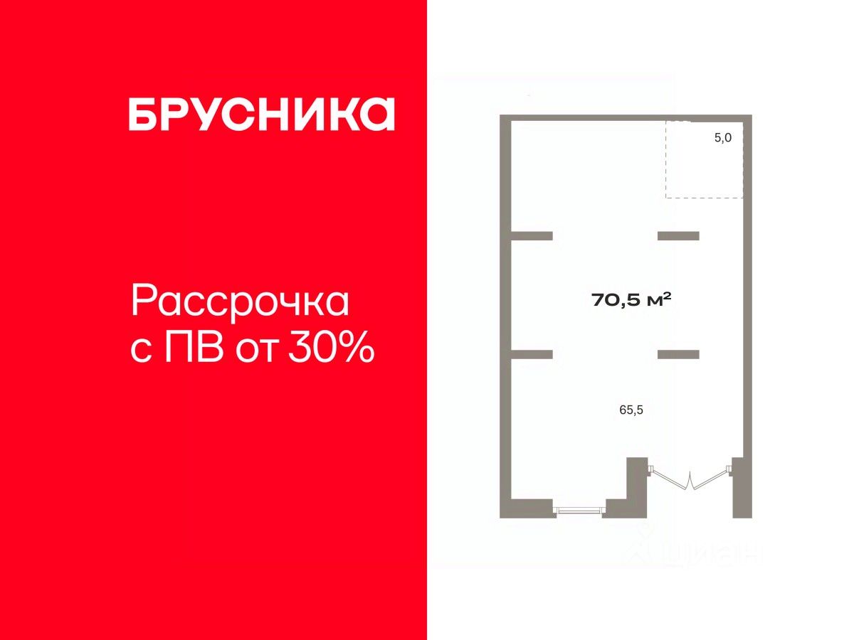 Помещение свободного назначения на 1 этаже, общая площадь 70.48 кв.м., без отделки. Стоимость помещения 18,300,000 руб., цена за кв.м 259,648 руб.
