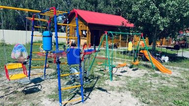 Детская площадка с горкой зимней, летней, качелями, батутом.
