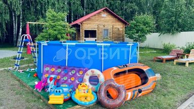 На территории 3 домика+ сауна , можно обустроить по концепции вашей деятельности.