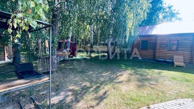 На территории 3 домика из бруса.