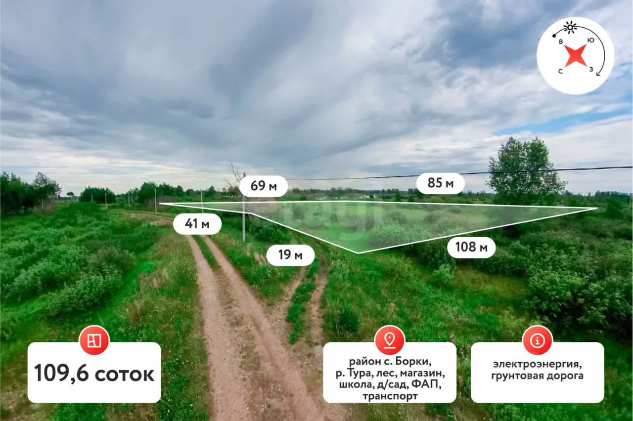 Удобное расположение всего в 3 км от поселка Борки по Тобольскому тракту делает этот участок идеальным местом для отдыха и релаксации. Вас окружают хвойные леса, где можно насладиться грибами и ягодами, а также отправиться на рыбалку в реку. Помимо этого, здесь есть охотничьи угодья для любителей охоты.