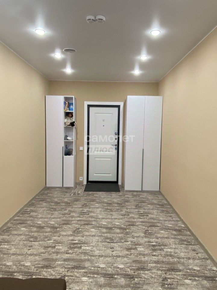 В помещении произведен косметический ремонт, установлена новая дверь, смонтирован натяжной потолок с точечными светильниками, на полу уложен ковролин.