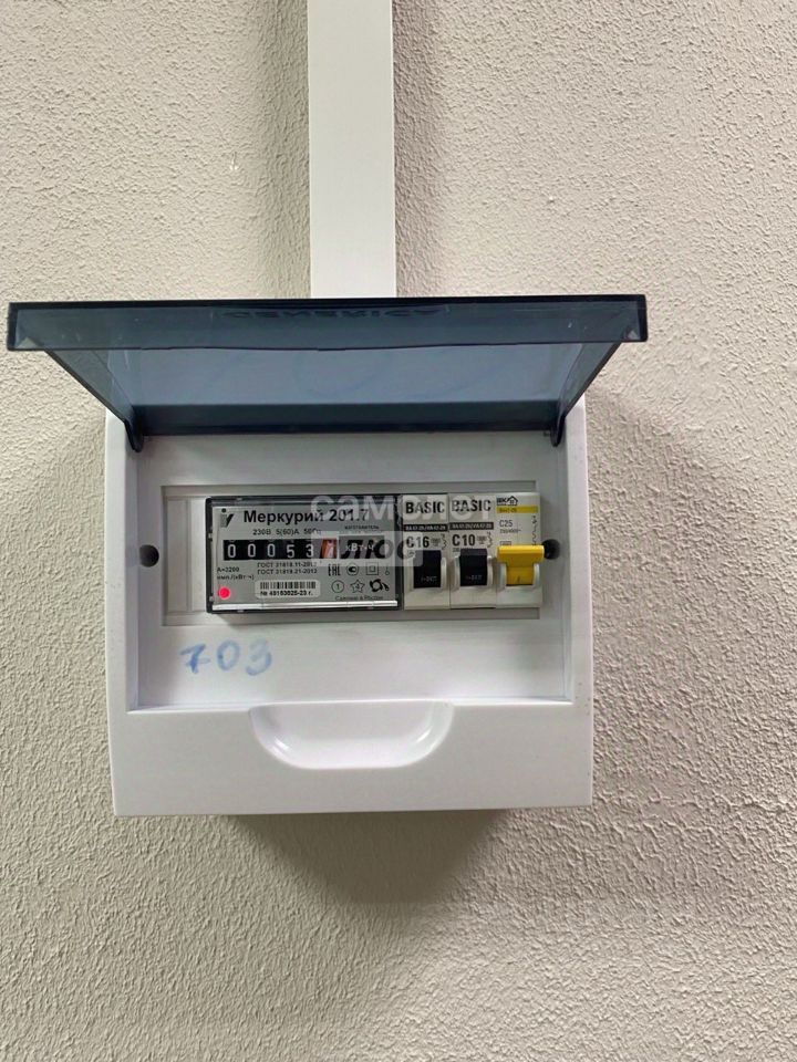 Отдельный счетчик электроэнергии установлен в коридоре на стене снаружи возле двери кабинета. Мокрая точка отсутствует.