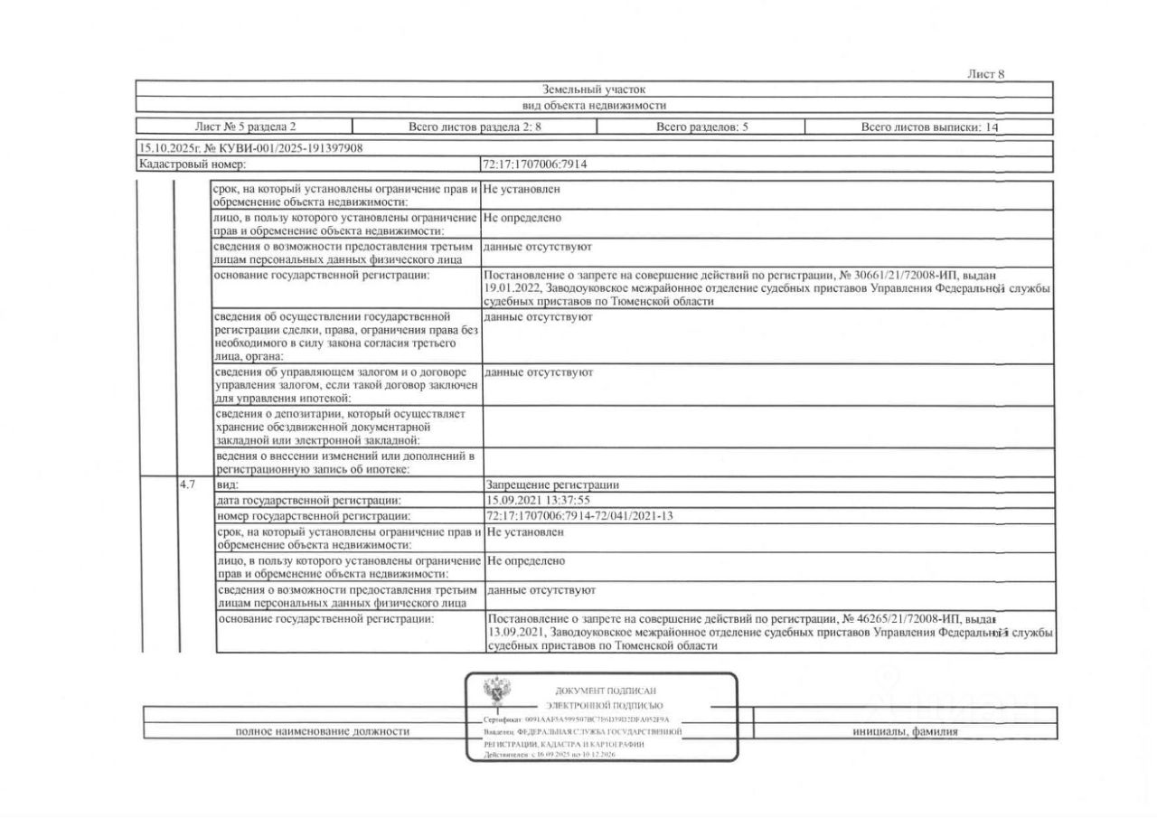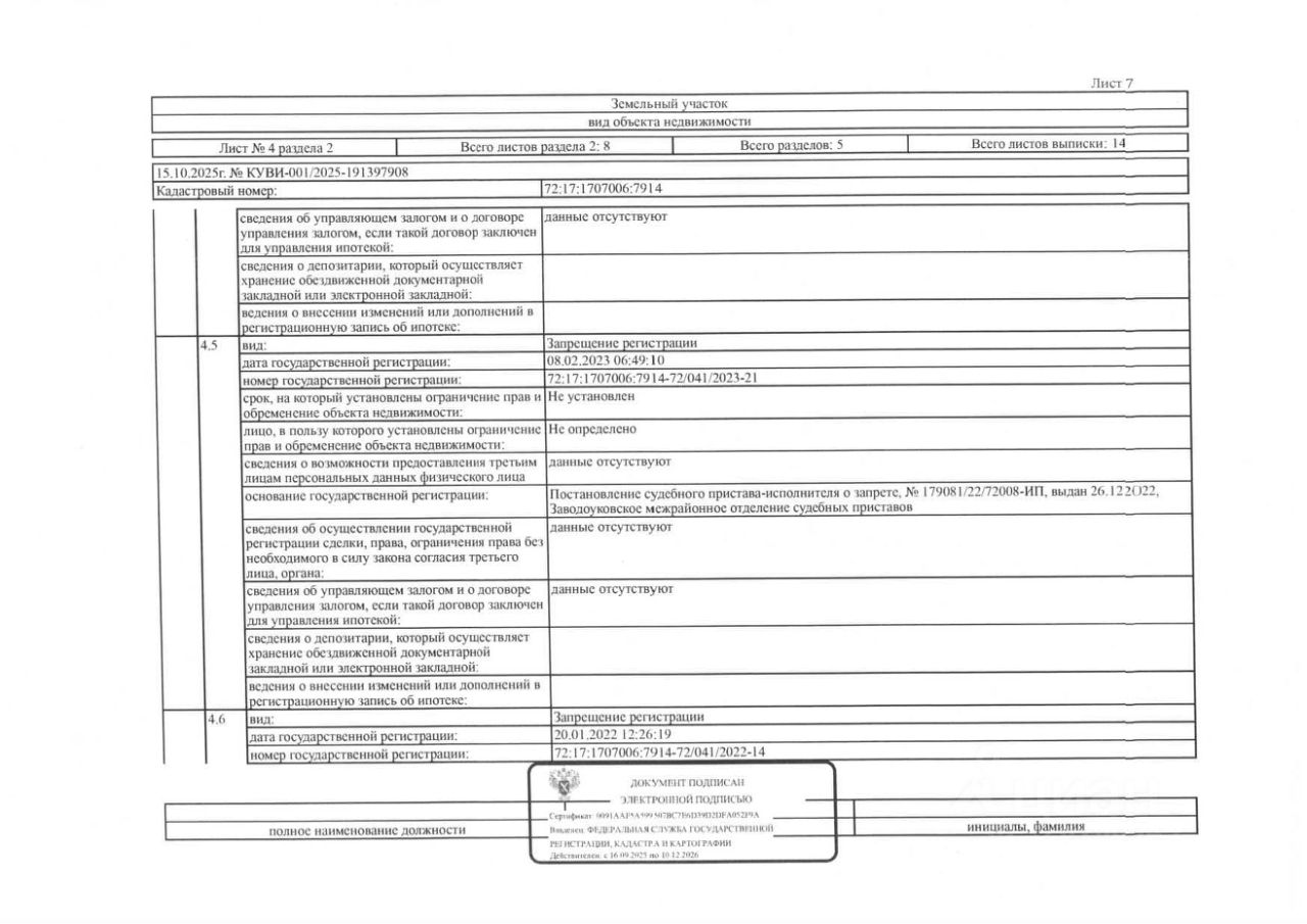 Должник: Велижанин А.А, собственник: Велижанин А.А. Лот: Земельный участок (земли населенных пунктов, для садоводства и огородничества), площадь 895 кв.м., кадастровый номер: 72:17:1707006:7914, г. Тюмень, СНТ "Поле Чудес-2", ул. Ягодная, пр. 8, уч. 274, н/ц: 705300 р., з-к: 105795 р., код: 0001, рег. 72-010442(26)