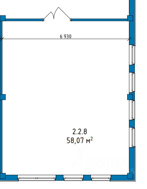 Продаётся коммерческое помещение свободного назначения площадью 58 м² в новом современном здании.