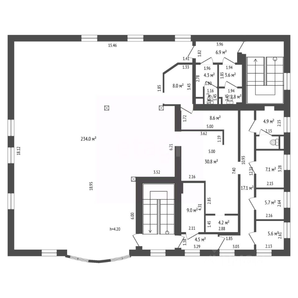 В помещении имеются все виды коммуникаций. В собственности, собственник физическое лицо. Рассмотрим все предложения. Земельный участок под комплексом в аренде на 49 лет. Высота от пола до потолка 4,2 м.