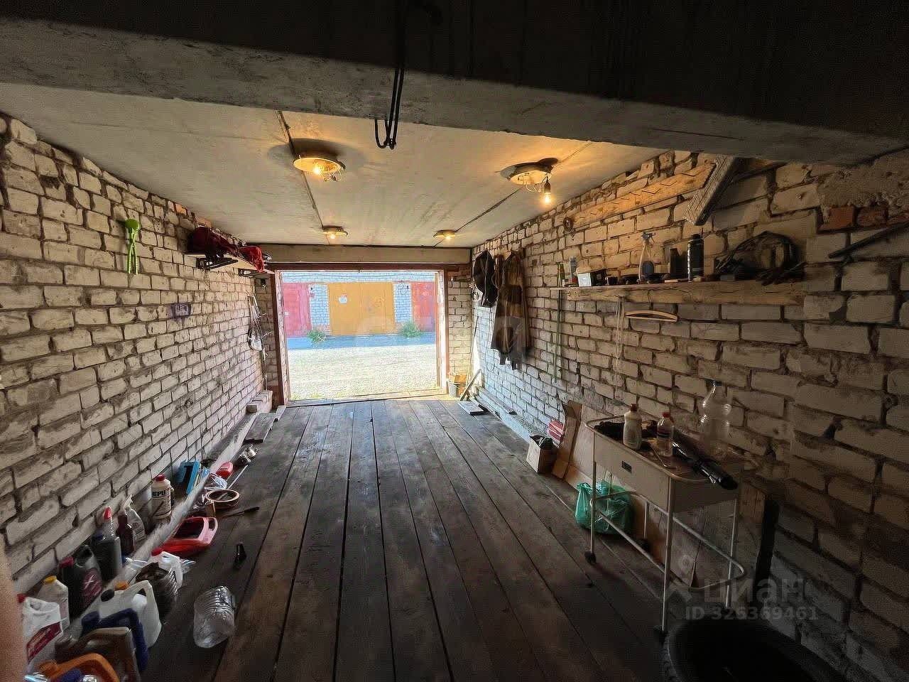Гараж имеет бетонное перекрытие и деревянный пол, обеспечивающие долговечность и комфортную эксплуатацию. В помещении проведено электричество, есть освещение, что делает его пригодным не только для хранения автомобиля, но и для использования в качестве мастерской или склада.