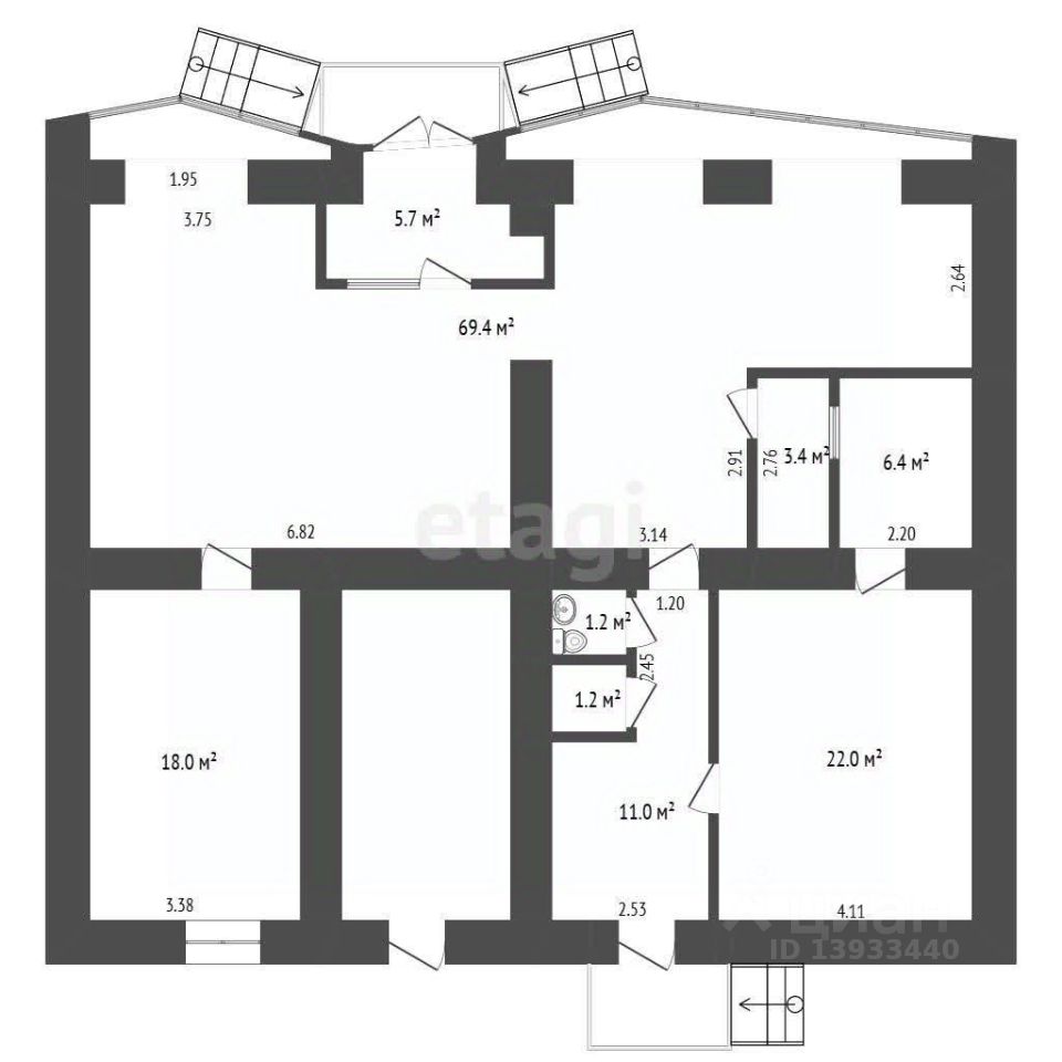 - высокие потолки 3 метра;