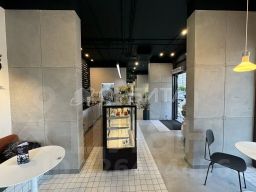Современный ремонт , есть всё необходимое оборудование. Окна выходят на дорогу и пешеходный тротуар, а также есть одно окно с боковой части дома. Большую часть дня в помещение падает естественный свет. Перед входом имеется парковка. Предусмотрено место под летнюю веранду. Рядом остановка.