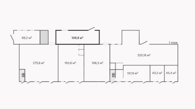 Помещение находится на 1 этаже в торговоофисноскладском здании. Площадь — 106,8 м². Высоки потолки, отдельная входная группа. Проведена реновация фасада здания
