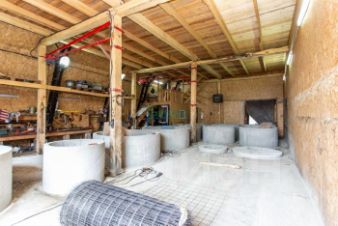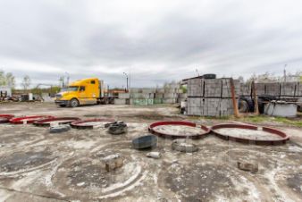 Общая территория базы 7800 кв.м., бетонное покрытие 6000 кв.м., ограждение бетонное протяженностью 308 м. На территории базы имеется три кирпичных строения по 33 кв.м., каркасный склад (ангар) общей площадью 430 кв.м. Коммуникации: электричество (разрешенная мощность 15 кВт), водоснабжение, канализация централизованное, газ проходит рядом с территорией базы (есть возможность подключить газификация в случае производственной необходимости).