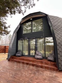 Комплекс занимает закрытую территорию, на которой разместились двухэтажный коттедж, стильный А-фрейм-дом и купольный дом. Каждый вариант размещения оснащен всем необходимым для пребывания: в домах современная мебель, удобные двуспальные кровати, гостиная, обеденная зона, полностью оборудованная кухня с электроплитой, а также ванная комната с душевой кабинкой или ванной и косметическими принадлежностями для гостей. Кроме того, возле каждого домика организована персональная барбекю зона с мангалами.