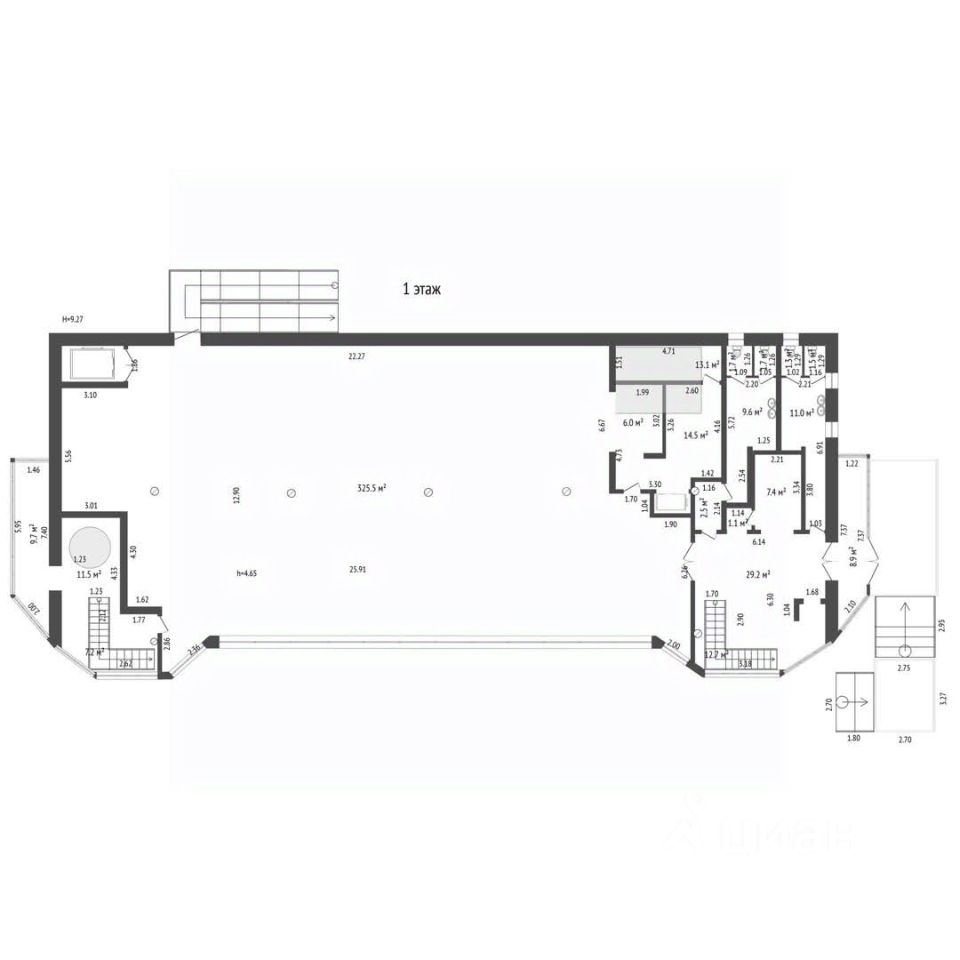 2-й этаж, 468,9 кв.м., свободное помещение с ремонтом. Состоит из трех помещений, примерной площадью каждый 80-110 кв.м. Возможно оборудовать помещение под свой бизнес: банкетный зал для небольших компаний, игровая зона для детей, установка бильярдной, кабинеты.