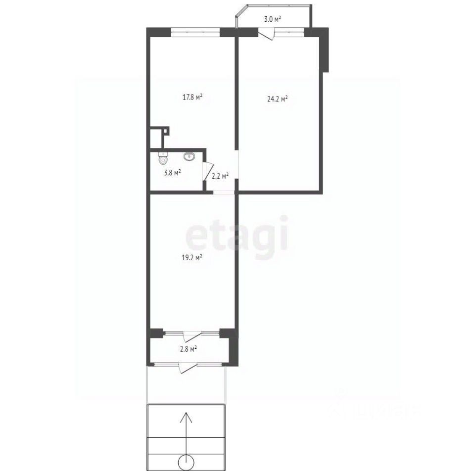 - Общая площадь 65,2 кв.м.;
