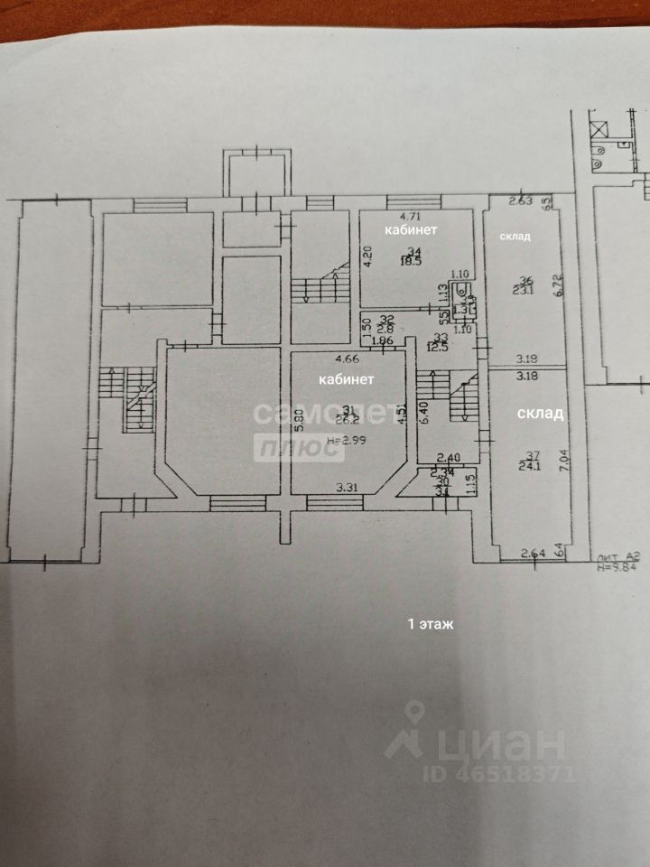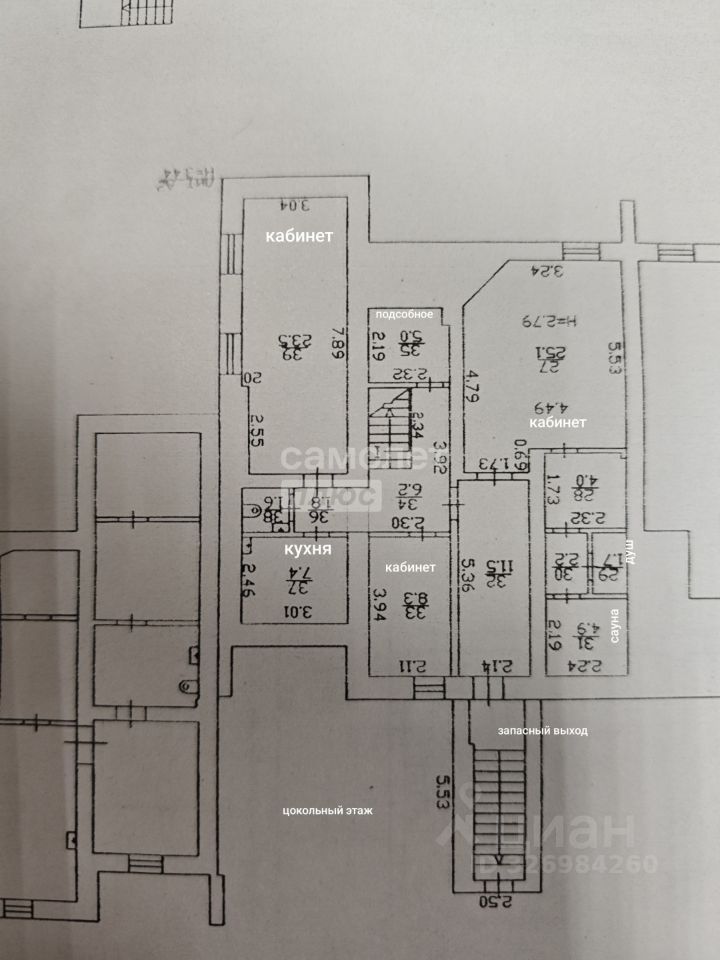 Помещение находится на двух этажах - первый и цоколь. В помещении два входа- центральный и запасный.