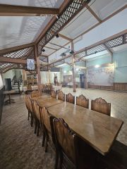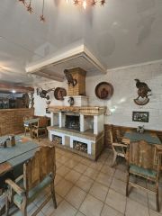 Весь интерьер заведения продуман до мелочей: деревянная мебель создаёт ощущение старины, чучела диких животных придают особую атмосферу, мягкие диваны приглашают отдохнуть после трудового дня. Аромат свежего , только что пожаренного шашлыка кружится в воздухе, маня прохожих заглянуть внутрь.