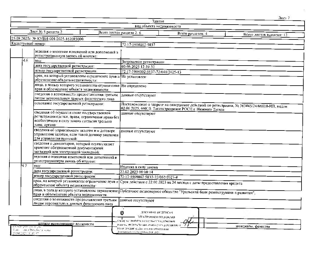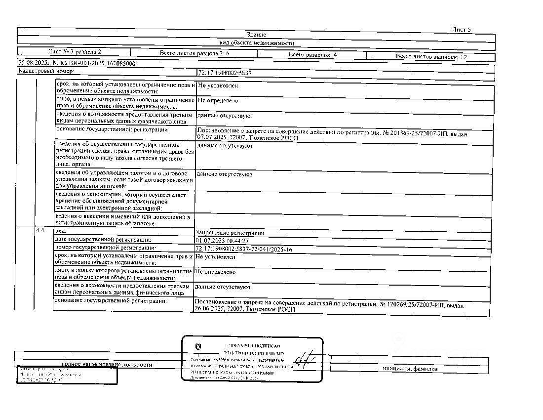 Должник: Мальцев А.Н., собственник: Мальцев А.Н. Лот: Земельный участок (земли населенных пунктов, для индивидуального жилищного строительства), площадь 802 кв.м., кадастровый номер: 72:17:1908002:5000, уч. 94, здание (жилой дом), площадь 132,9 кв.м., кадастровый номер: 72:17:1908002:5837, Тюменский р-н, с. Перевалово, ул. Ключевая, д. 1,н/ц: 6254300 р., з-к: 6254 р, код: 0014, рег. 72-010406;