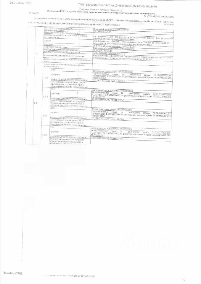 Должник: Долгих С.С., собственник: Долгих С.С. Лот: Земельный участок (земли населенных пунктов, для размещения индивидуального гаража), площадь 18,8 кв.м., кадастровый номер: 72:23:0216002:295, г. Тюмень, ул. Болотникова, 5, уч. 29, ГК "Лесник 26", н/ц: 391000 р., з-к: 58650 р., код: 0001, рег. 72-011279