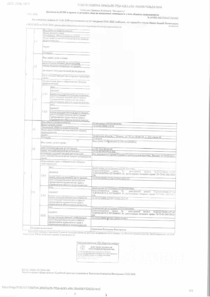 Должник: Ивлев А.И., собственник: Ивлев А.И. Лот: Нежилое помещение (гараж), площадь 17.4 кв.м., кадастровый номер: 72:23:0218006:13714, г. Тюмень, ул. 50 лет ВЛКСМ, д. 123, гараж 80, н/ц: 413200 р., з-к: 61980 р., код: 0001, рег. 72-011253