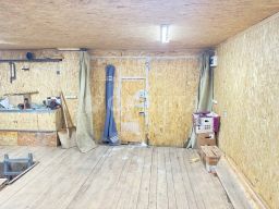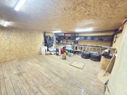 Стены железобетонные, пол,стены,потолок утеплены и обшиты деревом, ворота железные распашные, имеется погреб для хранения овощей, электричество.