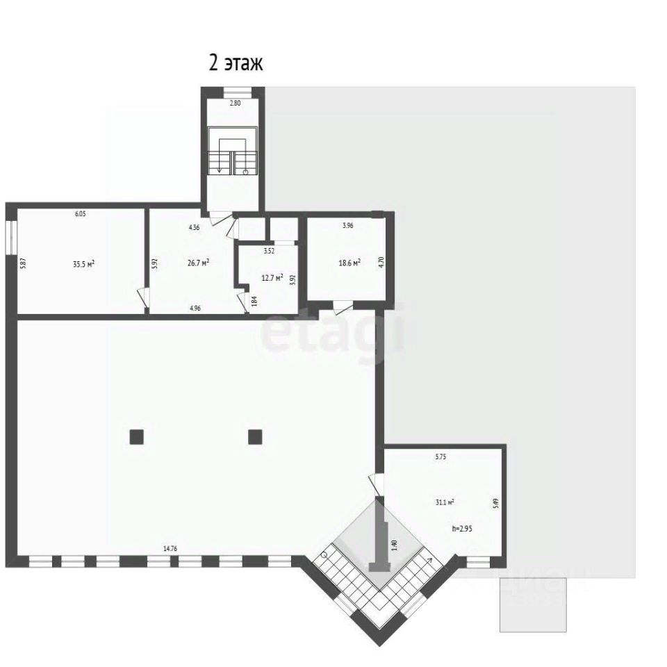 - высота потолка : 2,95 м
