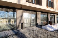 Помещение имеет свободную планировку и оснащено современными алюминиевыми витражными окнами, что создает светлую и уютную атмосферу. Отдельная витражная входная группа и безбарьерный доступ с уровня земли обеспечивают удобство для клиентов. Высота потолков составляет 3,3 м, что позволяет реализовать любые дизайнерские решения. Внутри выполнена улучшенная черновая отделка, предусмотрены системы приточно-вытяжной вентиляции и автоматического водяного пожаротушения, а также пожарной сигнализации.