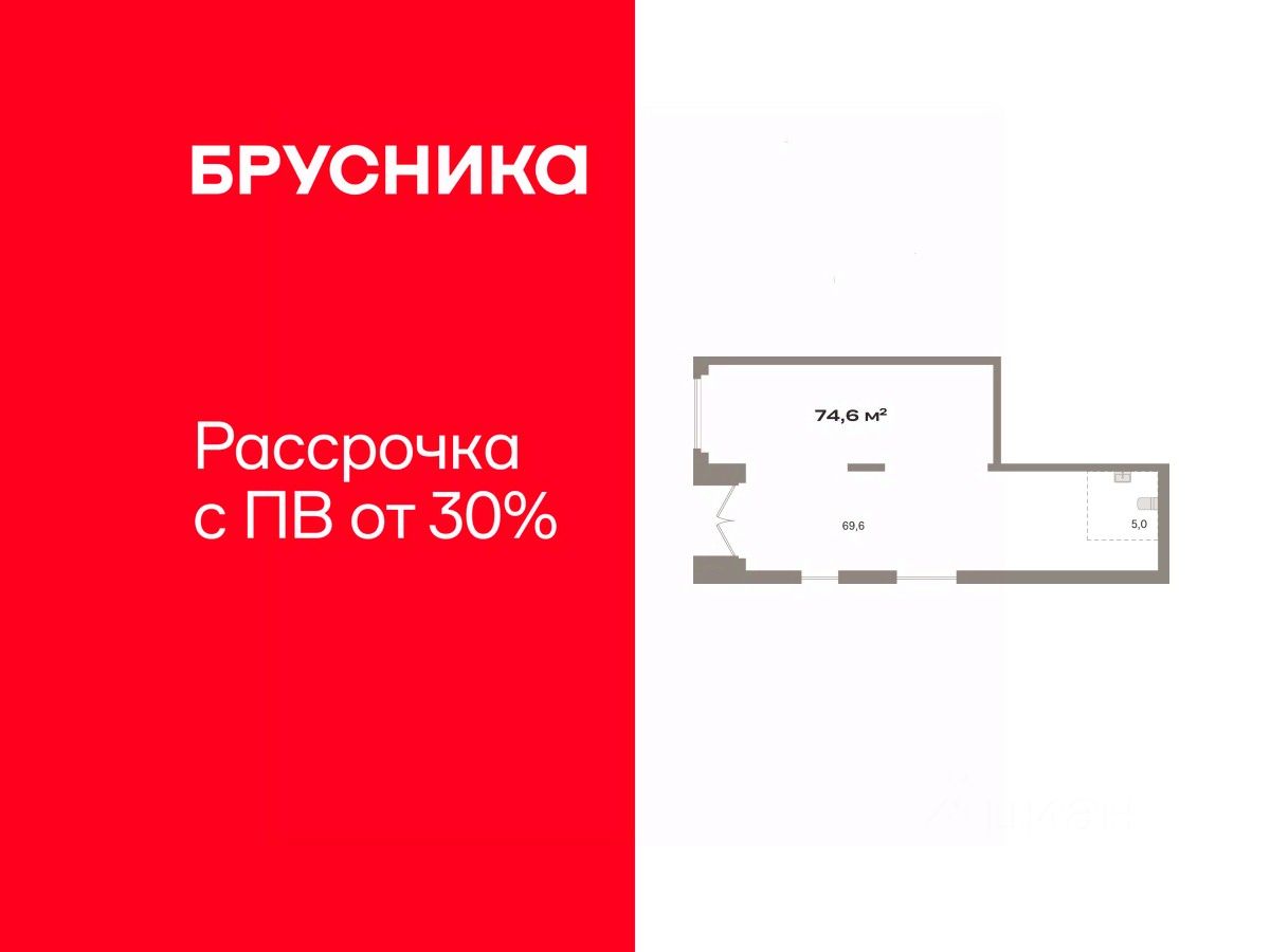 Помещение свободного назначения на 1 этаже, общая площадь 74.56 кв.м., без отделки. Стоимость помещения 19,920,000 руб., цена за кв.м 267,167 руб.