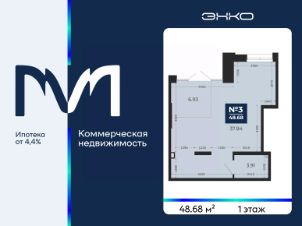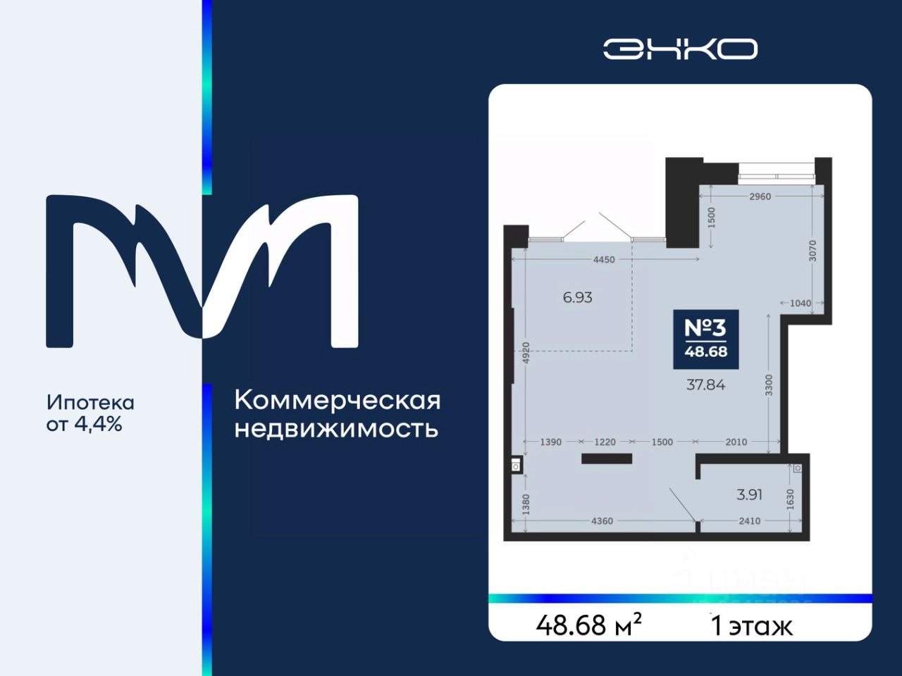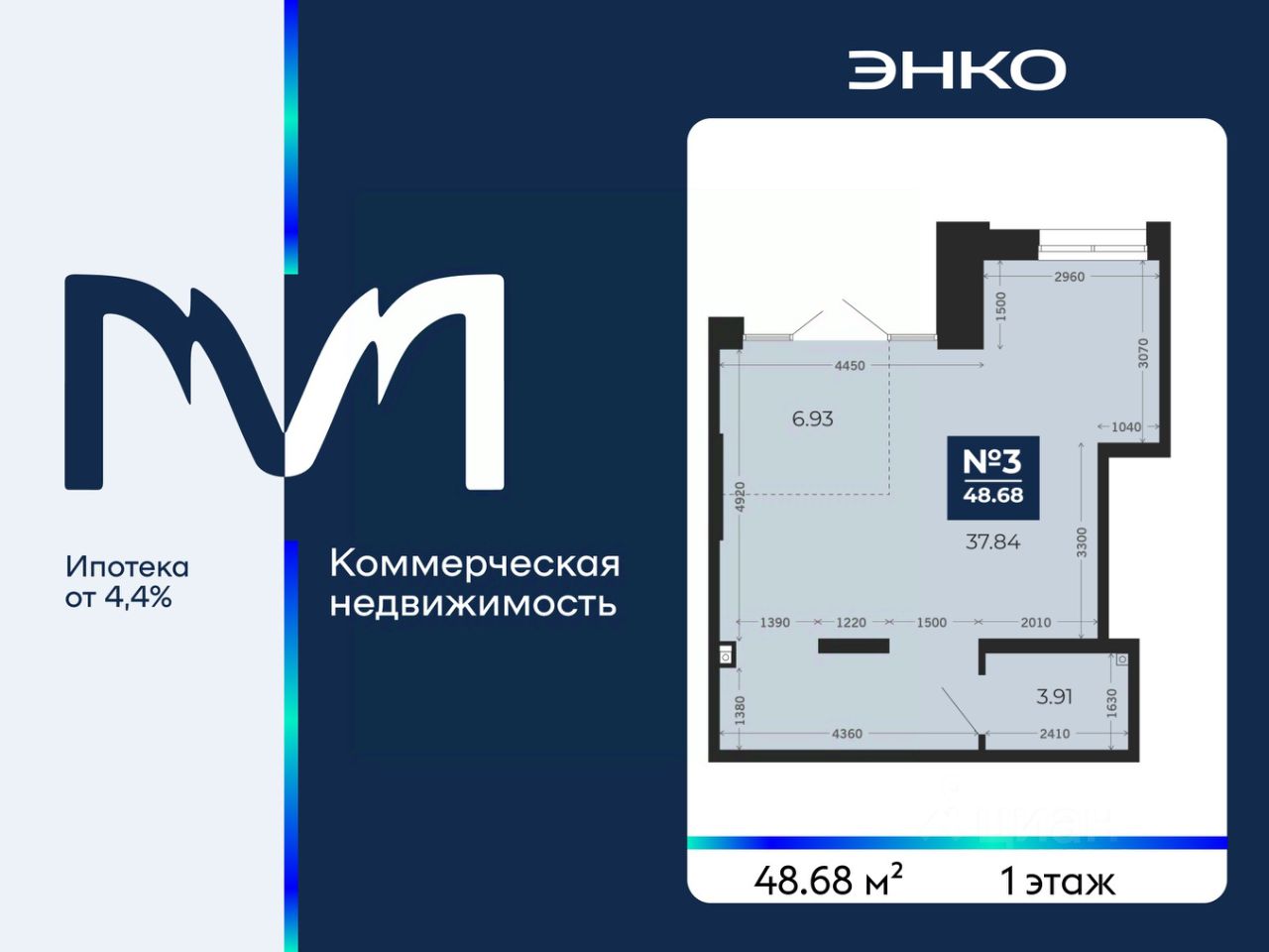Помещение свободного назначения на 1 этаже, общая площадь 48.68 кв.м. Стоимость помещения 11,090,000 руб., цена за кв.м 227,814 руб.