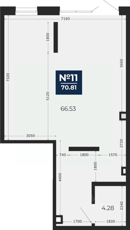 Помещение свободного назначения на 1 этаже, общая площадь 70.81 кв.м. Стоимость помещения 18,510,000 руб., цена за кв.м 261,403 руб.