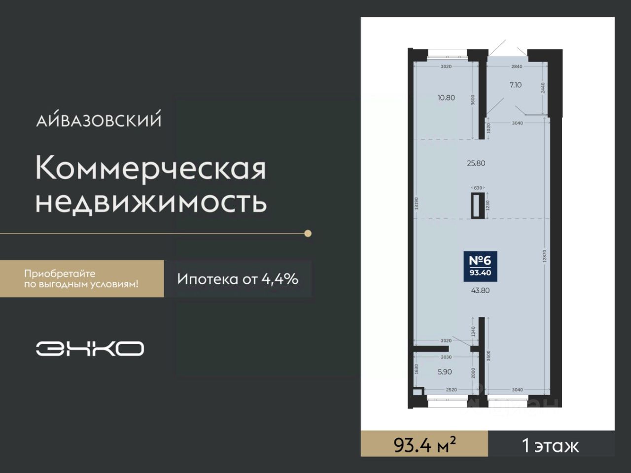 Помещение свободного назначения на 1 этаже, общая площадь 93.4 кв.м. Стоимость помещения 21,500,000 руб., цена за кв.м 230,192 руб.