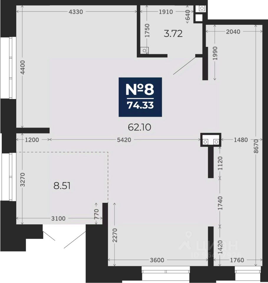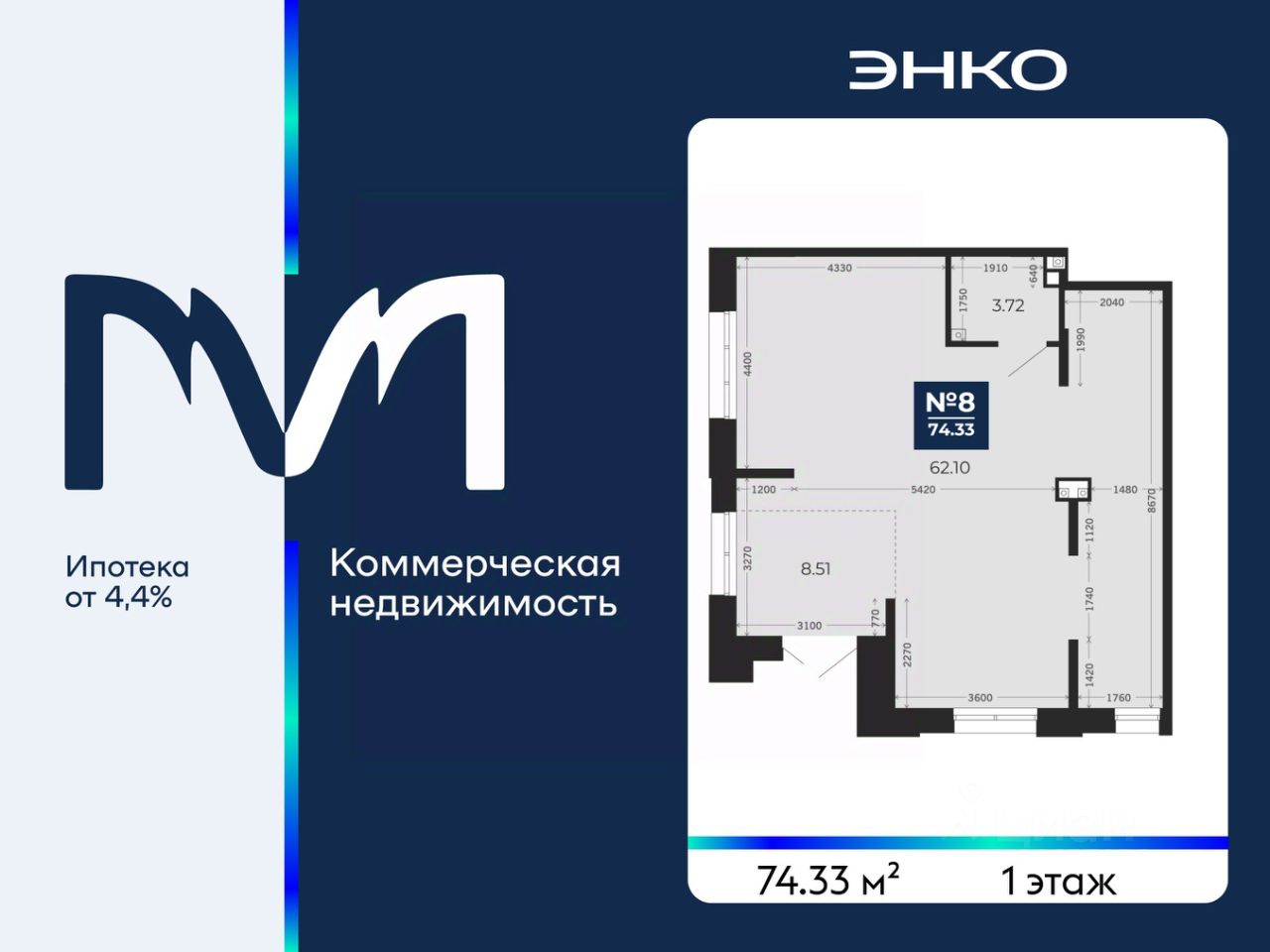 Помещение свободного назначения на 1 этаже, общая площадь 74.33 кв.м. Стоимость помещения 14,900,000 руб., цена за кв.м 200,457 руб.