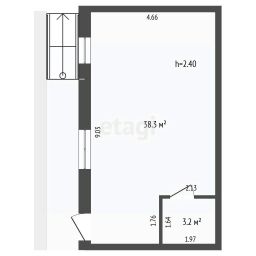• Открытая планировка: помещение без перегородок, что позволяет организовать пространство под ваши нужды.
