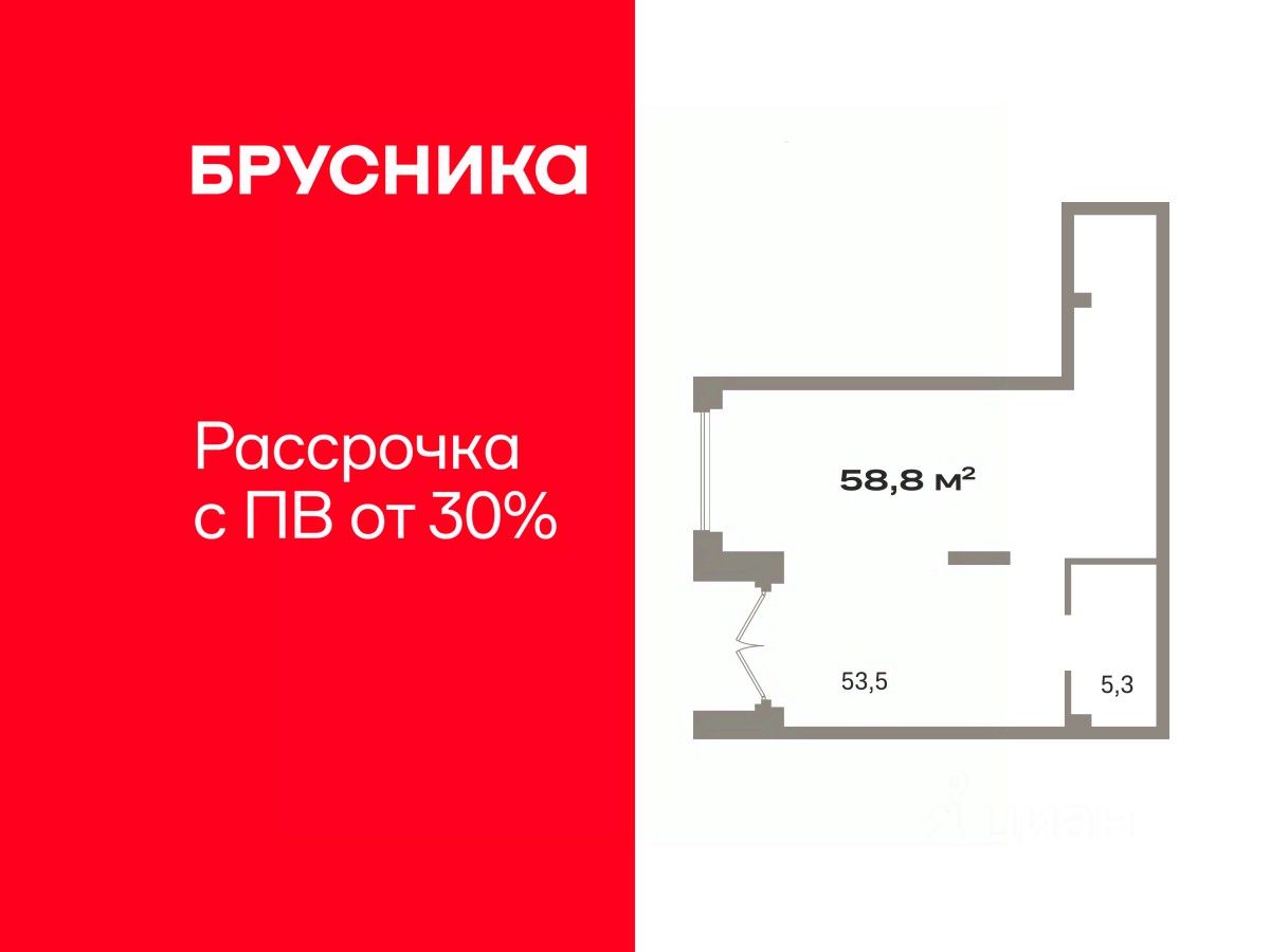 Помещение свободного назначения на 1 этаже, общая площадь 58.86 кв.м., без отделки. Стоимость помещения 13,720,000 руб., цена за кв.м 233,095 руб.