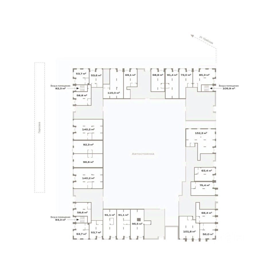 Помещение свободного назначения на 1 этаже, общая площадь 53.7 кв.м., без отделки. Стоимость помещения 16,700,000 руб., цена за кв.м 310,986 руб.