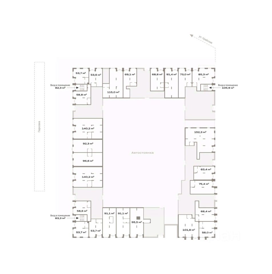 Помещение свободного назначения на 1 этаже, общая площадь 53.64 кв.м., без отделки. Стоимость помещения 16,270,000 руб., цена за кв.м 303,318 руб.