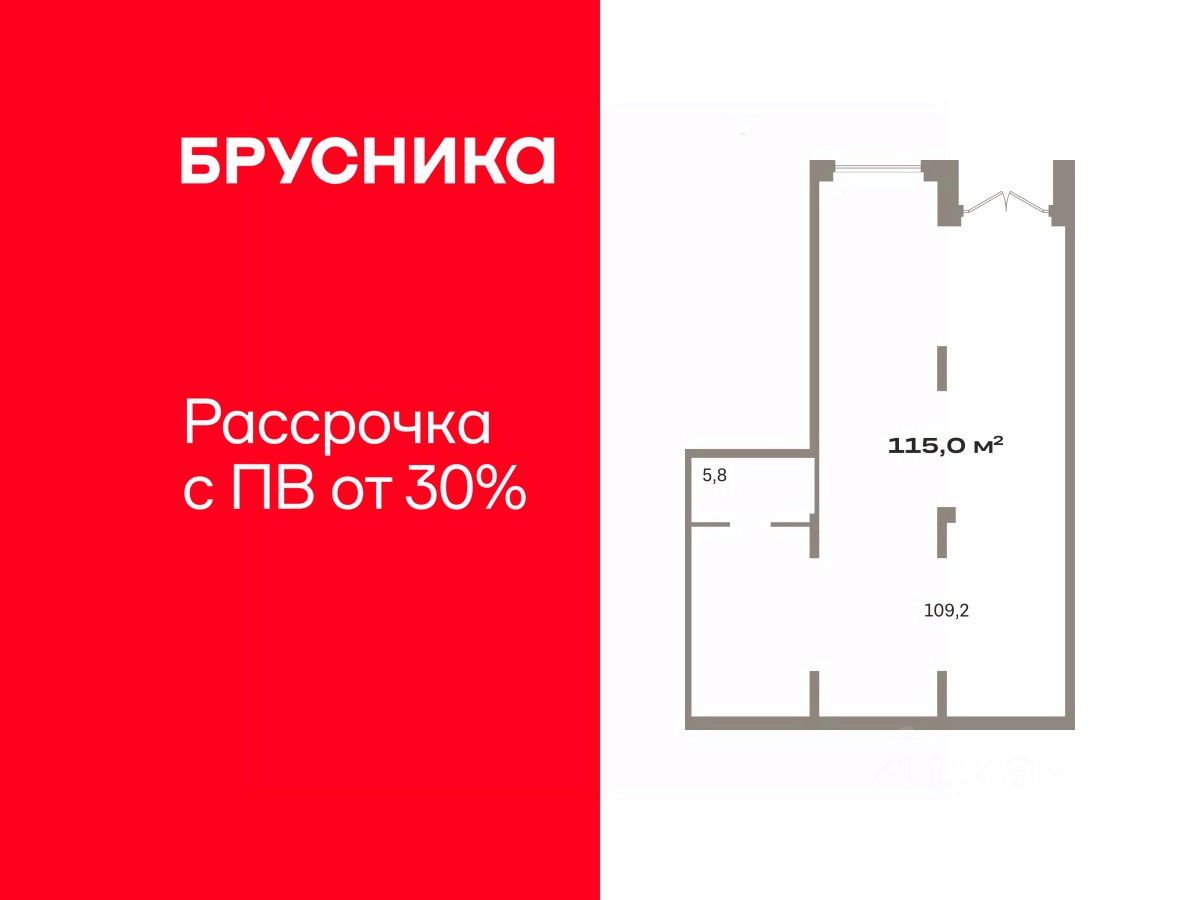 Помещение свободного назначения на 1 этаже, общая площадь 114.99 кв.м., без отделки. Стоимость помещения 29,770,000 руб., цена за кв.м 258,892 руб.