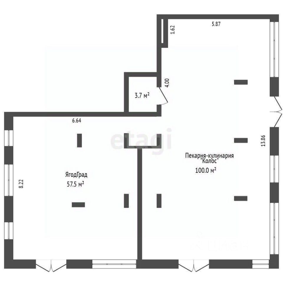 Арендаторы: Пекарня и ЯгодГрад (доделывают ремонт).