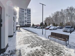 Из окон помещения открываются прекрасные виды на ухоженный двор и лес, что создает особую атмосферу уюта — это оценят и посетители, и сотрудники. Жилой комплекс ориентирован на экологию: здесь установлены постоматы с питьевой водой, организован раздельный сбор мусора, а уличное освещение работает от солнечных батарей. Для жителей предусмотрены 6 спортивных площадок и энергоэффективные окна в домах.