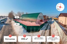 Вашему вниманию утеплённое, отапливаемое производственное помещение- арочник 598 м/кв в двух уровнях. Два независимых въезда. Ворота распашные - высота 3.4 м. секционные. Высота потолка 7.5 м. Фундамент на сваях 4.5 м. Полы бетонные с армированием. Стены на арках - швеллер 12 мм. Электропитание - 380, 220, на территории своя подстанция, линия заходит на 100 кВт. Светодиодной освещение. Своя котельная (котел на твердом топливе). Видеонаблюдение, пожарная сигнализация. Водоснабжение - скважина 26 метров. Установлена кран-балка грузоподъемностью 500 кг. Высокое место, не топит, отсыпка территории и подъезда битым кирпичом и шлаком не менее 20 см. Асфальтирована. Парковка 300 м/кв. ЖД тупик в 800 метрах по прямой грунтовой дороге. Участок 8,6 соток в собственности. Есть арендаторы. Просмотры в удобное для вас время